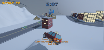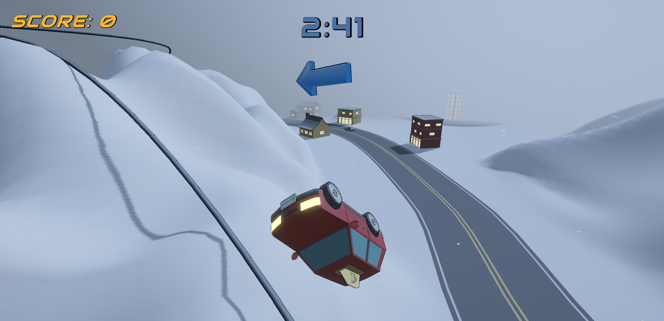 3 Minutes or it's on us! Inspired by Crazy Taxi, Pro Skater, and Rocket League. Deliver pizzas while drifting, wall riding, and grinding to traverse this treacherous, snowy environment.